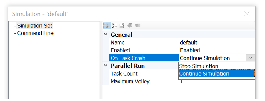 New Option to Automatically End Simulation Set on Task Crash: If a single EMTDC instance crashes or dies during a simulation set run, that simulation set will become stuck, continuously waiting for the dead task. This could put an exceedingly large amount of stress on a machine until the task is manually killed. No longer. We have added a simulation set option that will automatically shut down the entire set, if one or more tasks crash or die.