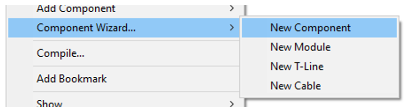 Auto T-Line/Cable Interface: A new transmission line/cable context menu function allows you to quickly generate a pre-configured, interface component to correspond with any transmission segment properties component. Simply right-click on the transmission segment properties component and select Create Interface.