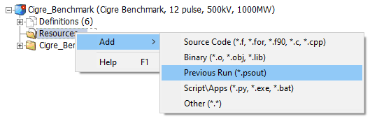 Once the simulation is complete, simply add the resulting *.psout file as a Previous Run project resource:
