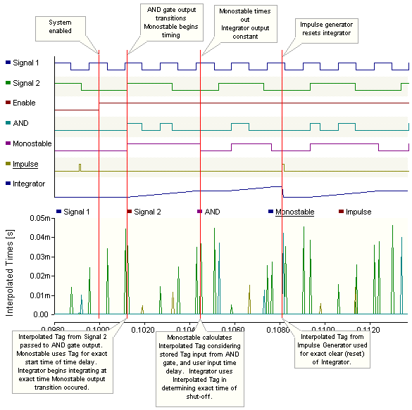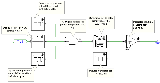 The propagation of an Interpolated Time Tag dx through a control system will normally occur within a single time step. Depending on the individual control functions present, dx may be passed through the system unaltered, or it may be modified or even ignored. Indeed, there may be several distinct interpolated times propagating along various control signal paths each time step – and these quantities could possibly interact with one another.