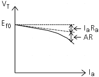 The terminal voltage, Vt, verses armature current Ia characteristic for this machine, at a constant field current and at a constant speed is shown below: