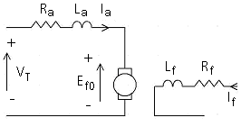 The Two Winding DC Machine shown in the figure above can be described by the following equations: