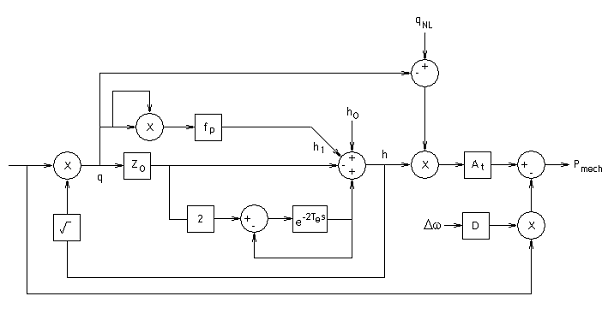 As indicated previously, each of these four hydro turbine models have a unique transfer function. The schematic diagram of each is given below.
