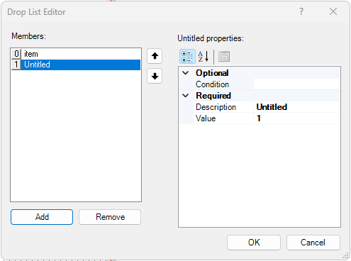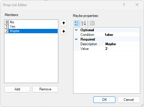 To delete a choice in the choice list, left-click on a choice within the Members list to select it. Click the Remove button.