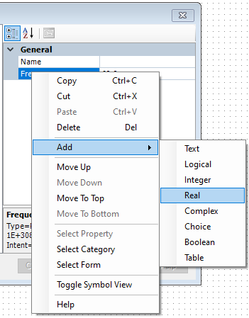 Or right-click over the parameter form and select Add. Select the appropriate item from the sub-menu: