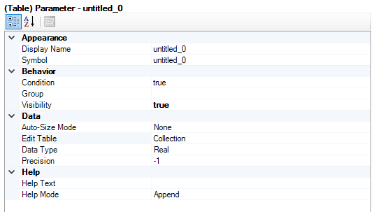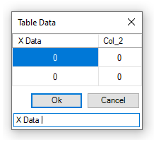Table fields are specially designed to allow the user to enter data in vector or matrix form directly as a component parameter. Table fields include the following numerical sub-types:
