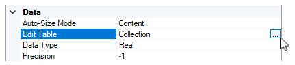 Table fields are configured via the Edit Table property in the Table Field Property Form. To open the table field for editing, click on the '...' button in the Edit Table field:
