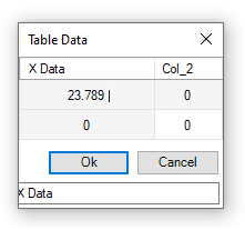 To enter default data (the default values that will appear when a new instance of the component is created), simply left-click the desired cell and enter a numeric value: