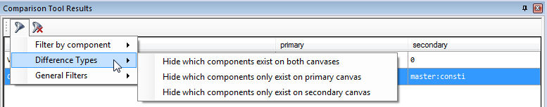 The data in the Comparison Tool Results pane may be filtered in a number of different ways in order to keep the information specific to what you are looking for. To filter the results: