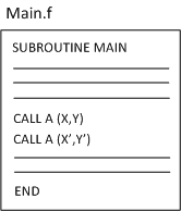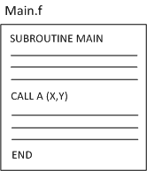 When a project is built, a separate Fortran (*.f) file containing a subroutine definition is created for every unique module definition used in the project. Any instance of said module definition will appear as a call within the subroutine of its parent module (i.e. the canvas on which the module instance is placed). For example, say a module definition called A is created and an instance of it is placed on the Main canvas.