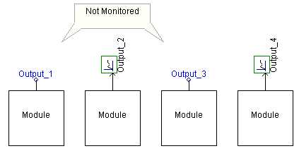 It is best to avoid placing an output channel component at this level. A better option would be to export the signal to be monitored as far up the module hierarchy as possible. This way the signal is available at an upper level, where the user can decide to monitor it if the need arises. The image below illustrates this concept: Instead of attaching an Output Channel to the signal inside the module canvas, the signal is exported to the parent canvas, where it can be monitored as desired.