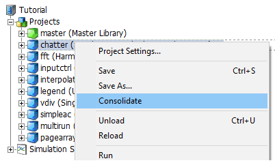 To consolidate a project, simply right-click on a specific project in the projects branch and select Consolidate.