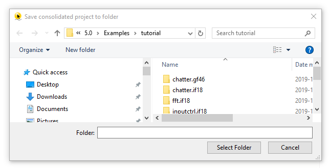 This action will open a save dialog. Select a folder, to which the consolidated folders should be placed. Upon selection, the files will be moved.