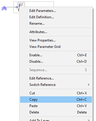 And that's it! PSCAD now has all the information it needs to perform a Paste operation intelligently, depending on where the object is pasted. To paste an object, use the hotkey Ctrl + v, or right-click and select Paste or a Paste Special function from the associated context menu: