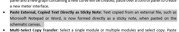 Text copied from an external file, such as Microsoft Notepad or Word, is now formed directly as a sticky note, when pasted on the schematic canvas in PSCAD.