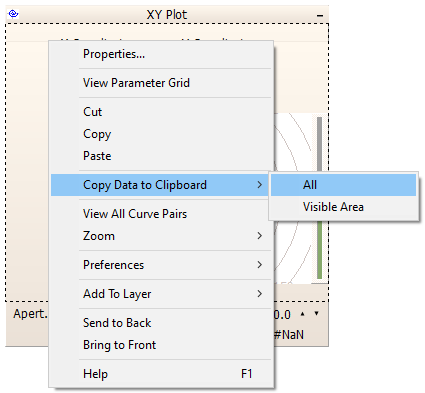 If a simulation has been run and your xy plot contains curve data, you have the option of copying all or a portion of this data to the clipboard.