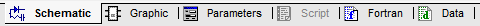 The definition editor is divided into six sub-windows. Each of the sub-windows can be accessed by simply clicking on the specific tab on bar at the bottom of the editor window. The tab bar is shown below for reference: