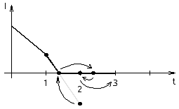 The main program would generate a solution at time = 2 (as it did above), but would then check its list for interpolation requirements. Since the new diode current is negative at time = 2, the main program would calculate when the current actually crossed zero. It would interpolate all voltages and currents to this time (say time = 1.2), and then switch the diode off.