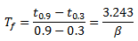 Method 2: Construction of the waveform based on wavefront and wavetail times. This is an approximate method. It is assumed that α << β and k ≈ 1. Then, it can be shown that, the front-time (Tf, defined as 10% and 90% basis) is: