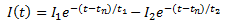 The standard waveshape for the surge, according to references [27] and [28], can be written in terms of two exponentials,
