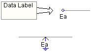 Voltage meters are used to create a signal, which represents the potential difference (in kV) between two nodes in a circuit drawing. This signal is assigned a name by the user. To access the signal, the user must use the name as a Data Label on a Wire or on the input connection of control component as shown below: