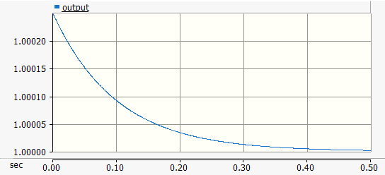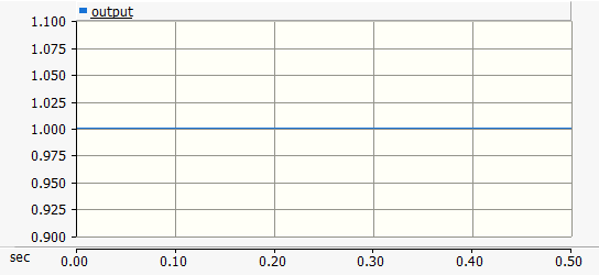 Although the output signal should have a value of 1.0 continuously throughout the simulation, it does not due to the fact that the error signal is non-zero at time zero. This results initially in a non-unity output on the integrator.