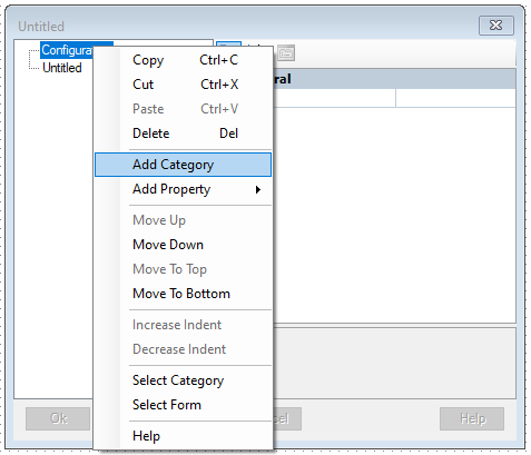 An editor is also provided for limited management of categories. To invoke, left-click the WYSIWYG display and click the '...' button on the Categories property.