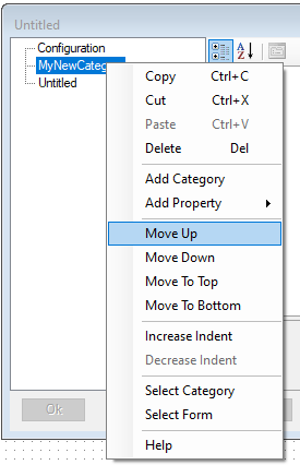 When you first create a new component, a default category called Configuration will be created for you. Categories are shown in the WYSIWYG display, but only if there are more than one. Therefore, the Configuration category will not initially be visible, as there is only one category. Once a second category is added, the tree will appear: