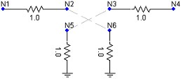 The matrix above does not contain all of the connection information required however. We know through the Transformers segment in the transformer component, that nodes N2, N3, N5 and N6 are all part of a mutual impedance matrix and are hence all connected together as shown below: