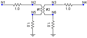 #TRANSFORMERS 2 #WINDINGS 2 ! 2 / $A1 $B1 $R11 $L11 / $A2 $B2 $R12 $L12 $R22 $L22 / ! 888 / ! $A3 $B3 / $A4 $B4 / |