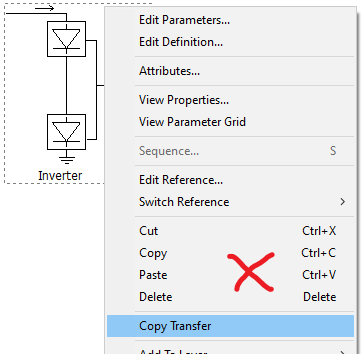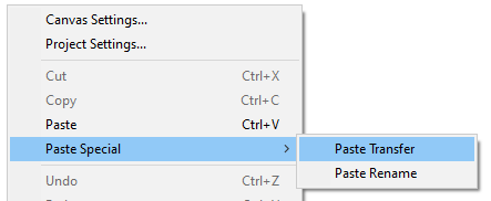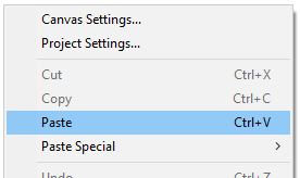 And that's it! PSCAD now has all the information it needs to perform a Paste operation intelligently, depending on where the object is pasted. To paste an object, use the hotkey Ctrl + v, or right-click and select Paste or a Paste Special function from the associated context menu: