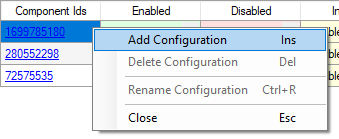 To add a new configuration, enter a name into the Name field and press the + button. Or, right-click anywhere and select Add from the context menu. Press the Insert button.