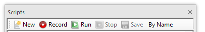 The Scripts pane includes the relevant controls needed to run and record scripts. These exist as buttons along the top bar: