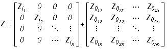 The elements of Zi and Z0 are themselves sub-matrices of dimension m x m, where m corresponds to the number of conducting layers in each respective cable n. If Equation 9-4 is rewritten in matrix format, it would appear as follows: