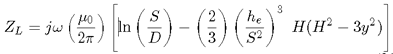 In 1973, an analytical approximation to the Pollaczek integral was developed by Wedepohl and Wilcox, who found that up to very high frequencies only a subset of Pollaczek terms need be taken into account. The mathematical proof of their work is quite involved and so only the end result is shown in Equations 8-29 and 8-30 below: Equations for both the self and mutual parts of the earth return impedance is included. For a detailed account of the proof, see [7].