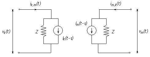 The change in Norton impedance Z is reflected in the definition of the Norton current injections Ik and Im as follows: