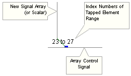 The Data Signal Array Tap may be connected to a Wire component carrying an array (or data vector) as shown below: