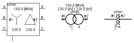 This component models a 3-phase, 3/5 limb transformer and is based on the UMEC modeling approach.