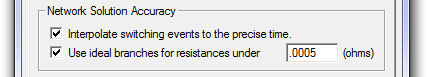 With this option enabled, you can create an infinite bus by either entering a value less than the threshold (set in the threshold field directly to the right of this check box) or 0.0 W for the source resistance. Similarly, for a zero resistance branch, enter a value less than the threshold or 0.0 W for the ON resistance of a diode, close resistance of a breaker, etc.
