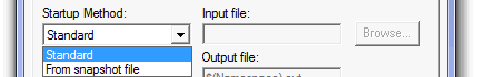An input field is included directly beside this field called Input File. Enter a name for the snapshot file to be used here. See Starting from a Snapshot for more details on how to create and start from a snapshot file.