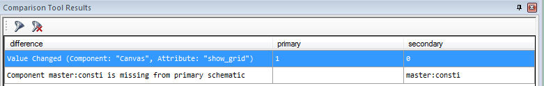 The comparison is performed directly on the XML data representing each module definition, and so the differences detected encompass just about everything from parameters, script and graphics of components on the Schematic canvas, to Canvas Settings and other properties. The tool will also detect whether or not components exist in both the primary and secondary module definition being compared.