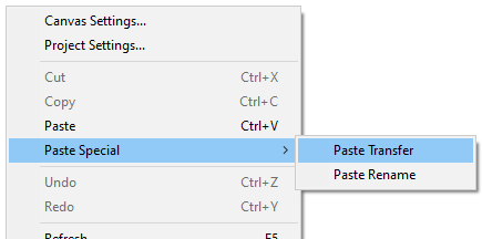 This action copies all module definitions that are part of this module hierarchy, along with the instance information (i.e. entered parameter data) of the top-level module. To paste the new hierarchy, right-click on a schematic canvas in any loaded project and select Paste Special | Paste Transfer.