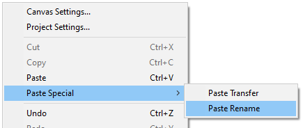 And that's it! PSCAD now has all the information it needs to perform a Paste operation intelligently, depending on where the object is pasted. To paste an object, use the hotkey Ctrl + v, or right-click and select Paste or a Paste Special function from the associated context menu: