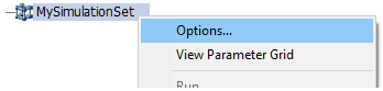 To invoke the Simulation Set Options dialog, right-click on an existing simulation set and select Options...
