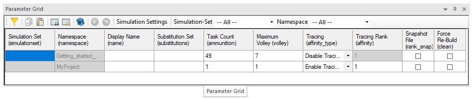Here is an example simulation options view in the parameter grid: