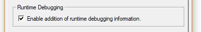 Next, navigate to the Fortran section of the dialog and enable the Enable addition of runtime debugging information option in the Runtime Debugging area.