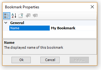 To change the name of a bookmark, right-click on it in the bookmarks pane and select Properties. Change the name in the field provided: