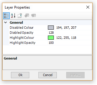 The colours used for highlighting components that are part of a layer, are adjustable. Right-click on any layer and select Properties.