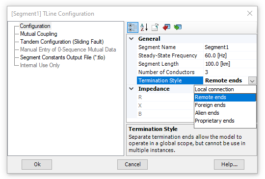 Next, edit the parameters of the configuration component and ensure that Termination Style | Remote Ends is selected.