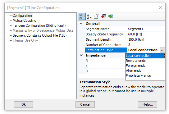 Next, edit the parameters of the configuration component and ensure that Termination Style | Local Connection is selected. Local Connection mode is the default when the component is first created.